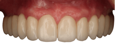At Aria Dental, our professional preference is not to complete treatment rapidly and rush the process. Instead, we prefer to allow time for the gums to heal and for the patient to adjust to a set of temporary teeth before finalising the treatment. Making a set of gum set ceramic teeth takes much longer than an acrylic bridge; the Aria team must carefully shape and contour the gum and the teeth so that the new gum set prosthetic teeth look like they are emerging from the gum. This is the closest we can currently get to reproducing natural teeth.
